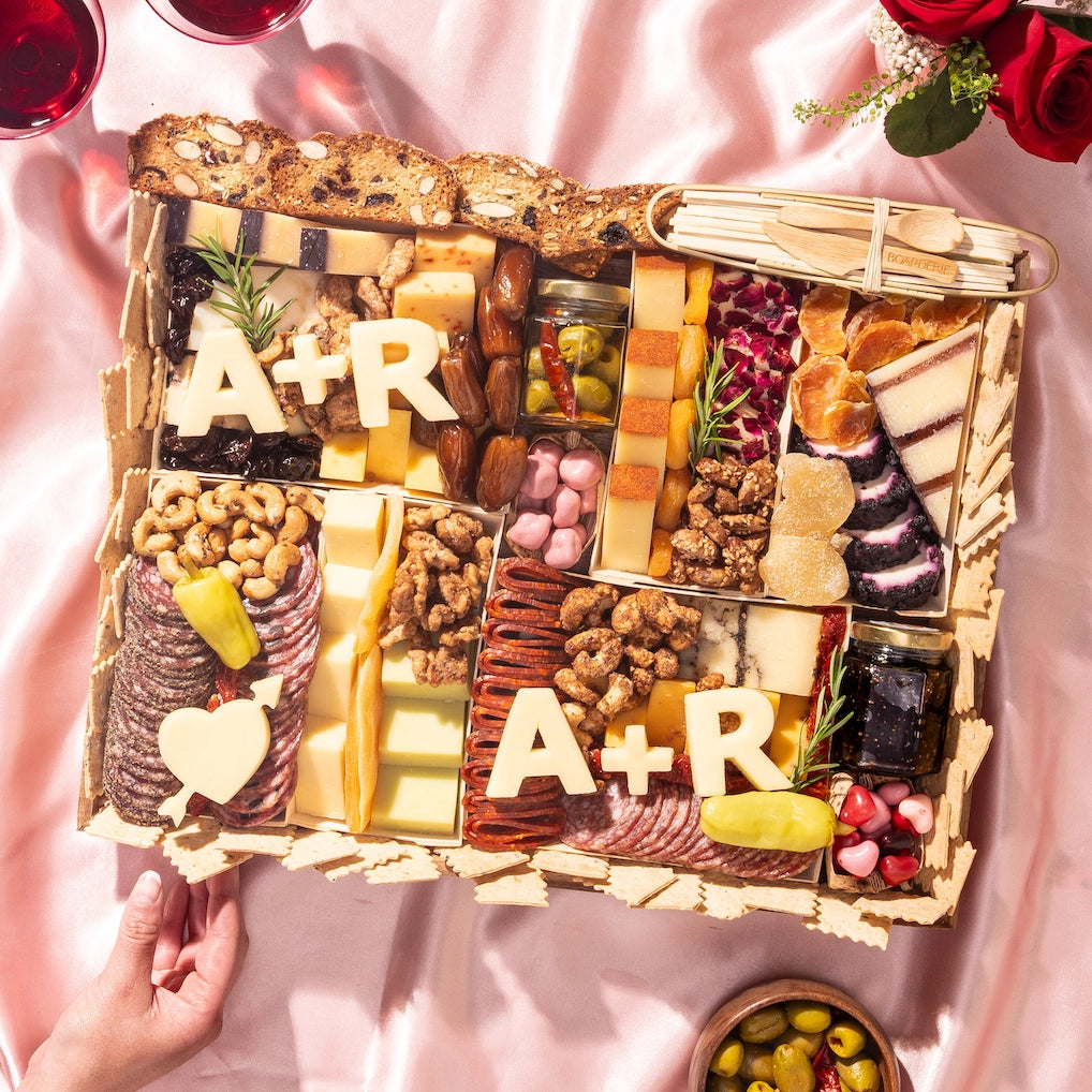 - 38 hand-selected artisan cheeses, meats, dried fruits, nuts, chocolates, olives, jam & crackers